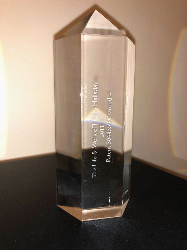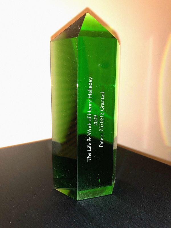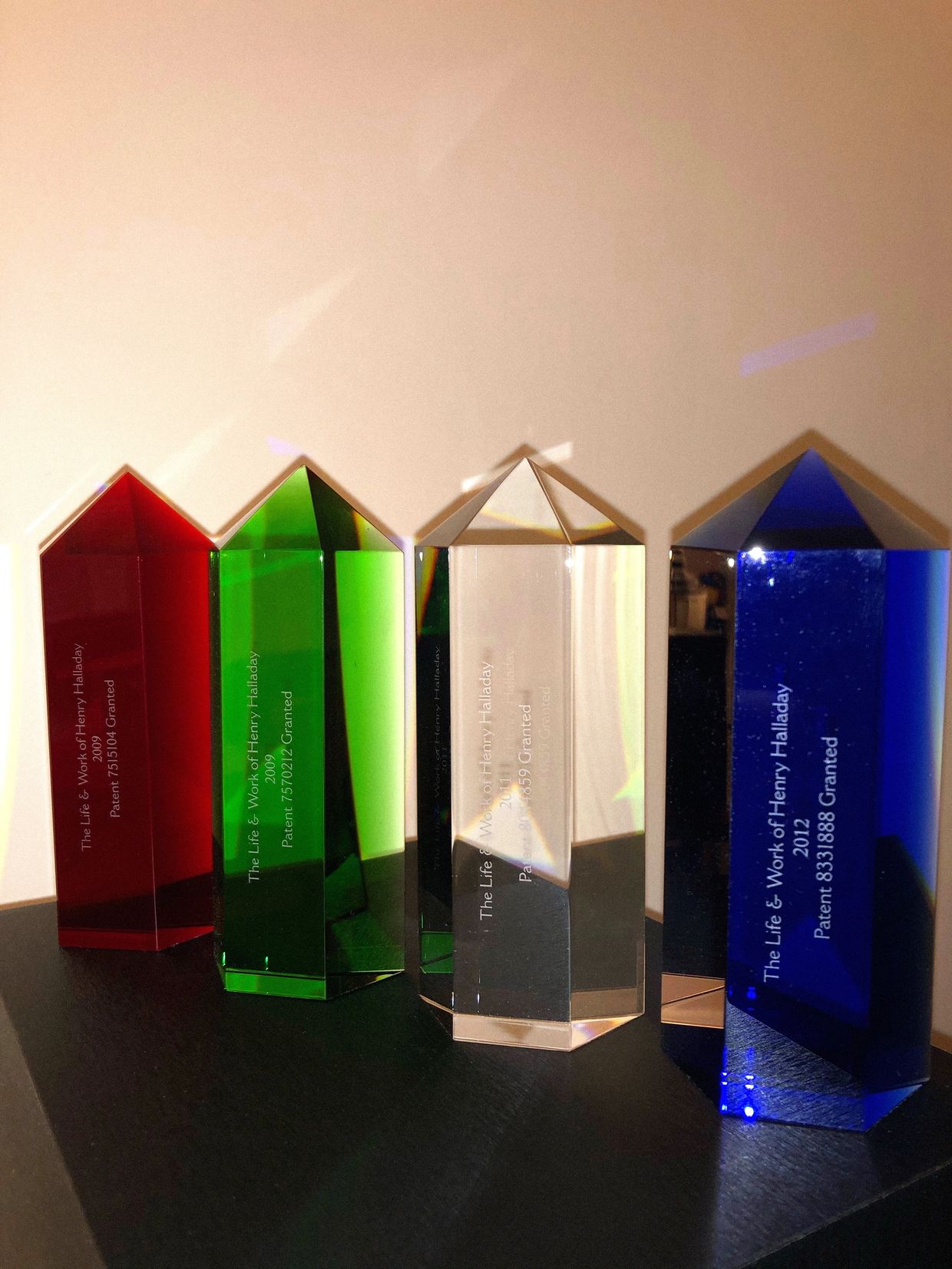 During a span of three years, Henry Halladay was granted four separate patents. The individual years and patent numbers are indicated on the pieces above. This colorful, beautiful set is indeed an official part of the Life & Work series, as evidenced by the sand etched engravings, but this is one of the entries that in a way stands on its own. It's one of the unique series-within-a-series that has become a hallmark of the Life & Work collection.